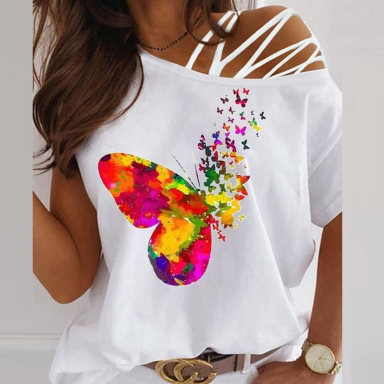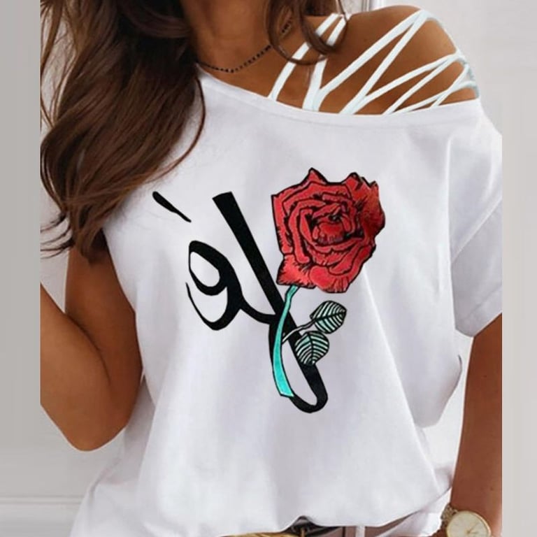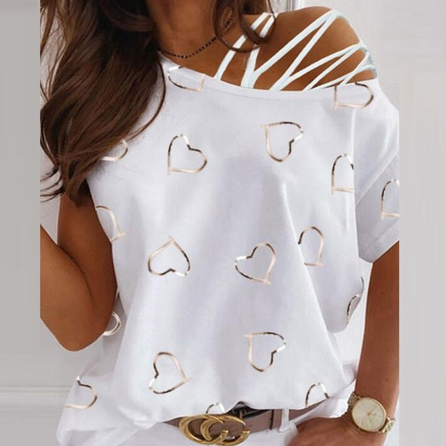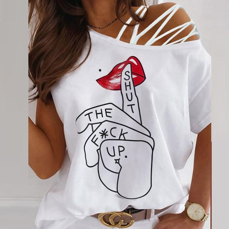 • Etichette: T-shirt da donna, t-shirt, piacevole, comodo, t-shirt a maniche corte, con stampa, con spalle scese, con scritta