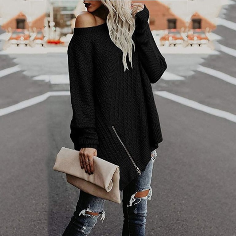 Maglione asimmetrico da donna Monika - nero