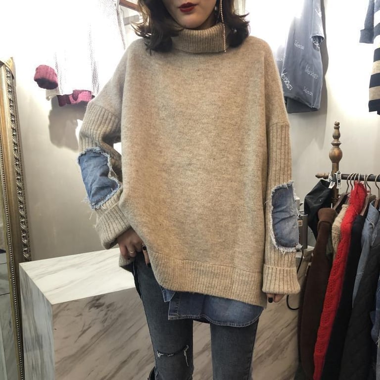 Maglione da donna con inserti in denim