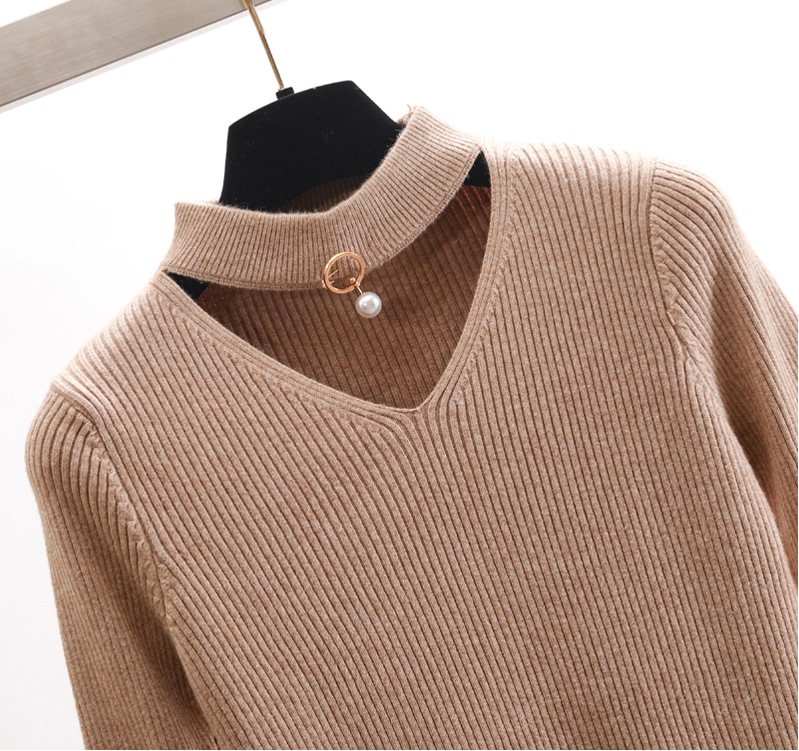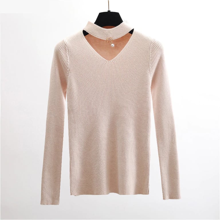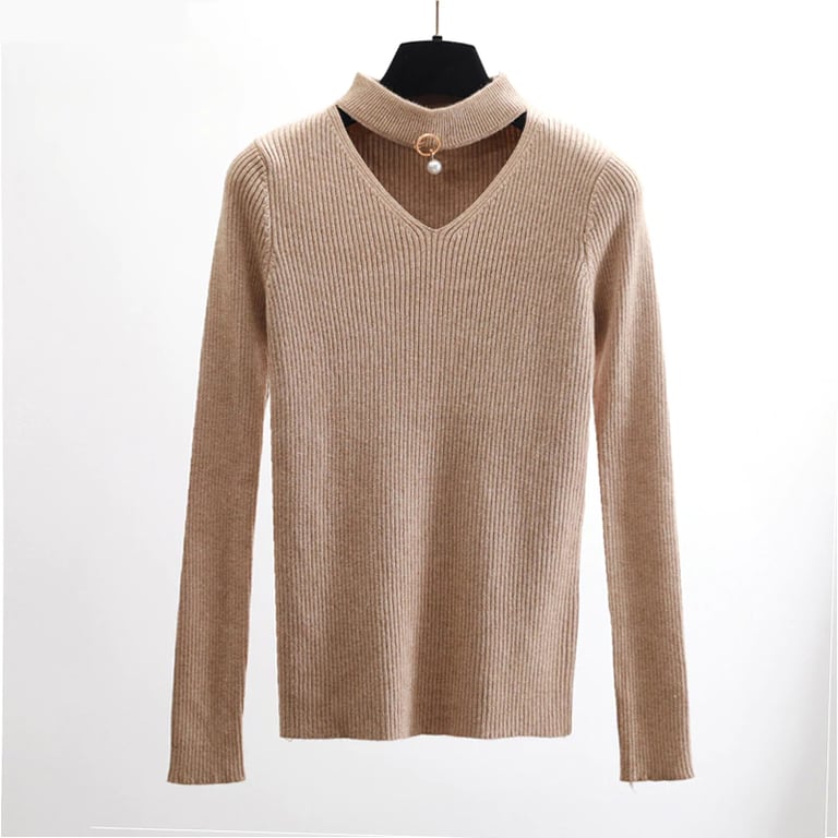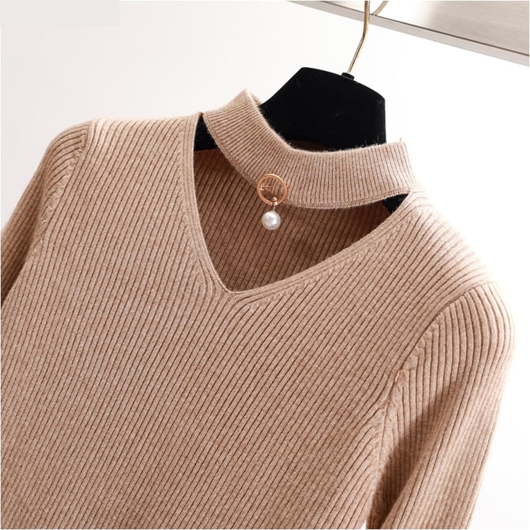 Elegante maglione in materiale delicato. Ha un taglio unico che esalta la tua femminilità. Collo alto con scollatura decorata da una perla.