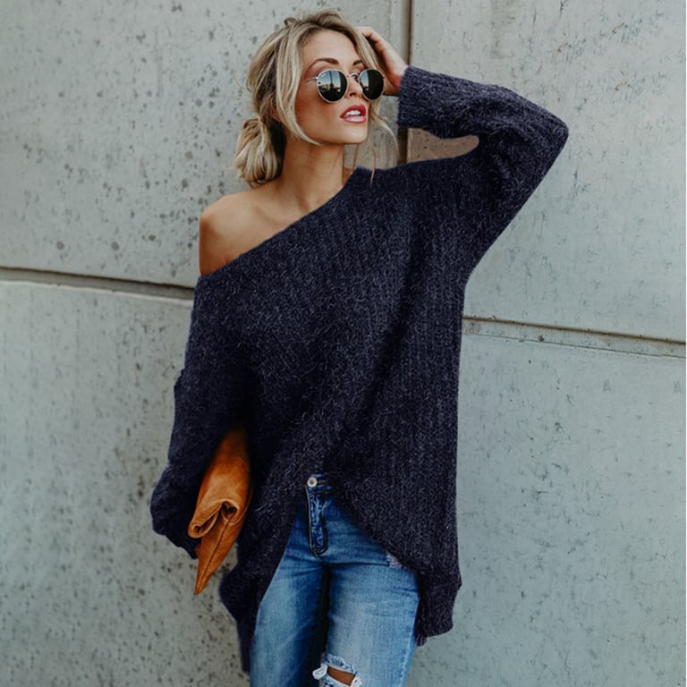 Un elemento indispensabile in ogni guardaroba – un maglione con scollatura ampia, da indossare in qualsiasi occasione.