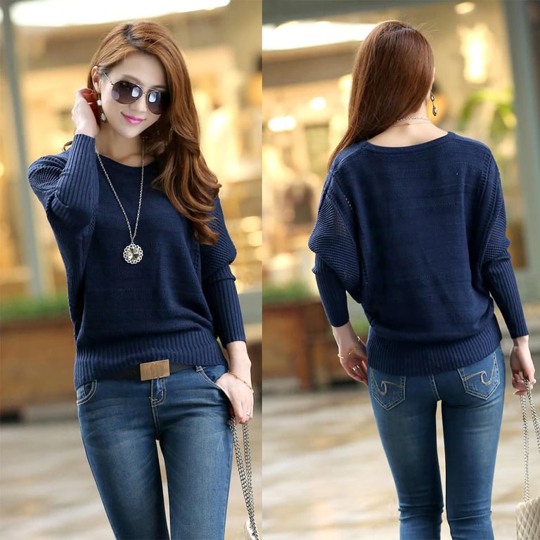 Un elegante maglione lavorato a maglia con maniche a pipistrello e un delicato motivo. Si abbina perfettamente ai jeans ed è adatto per la città, per il lavoro ma anche per un caffè con un'amica.