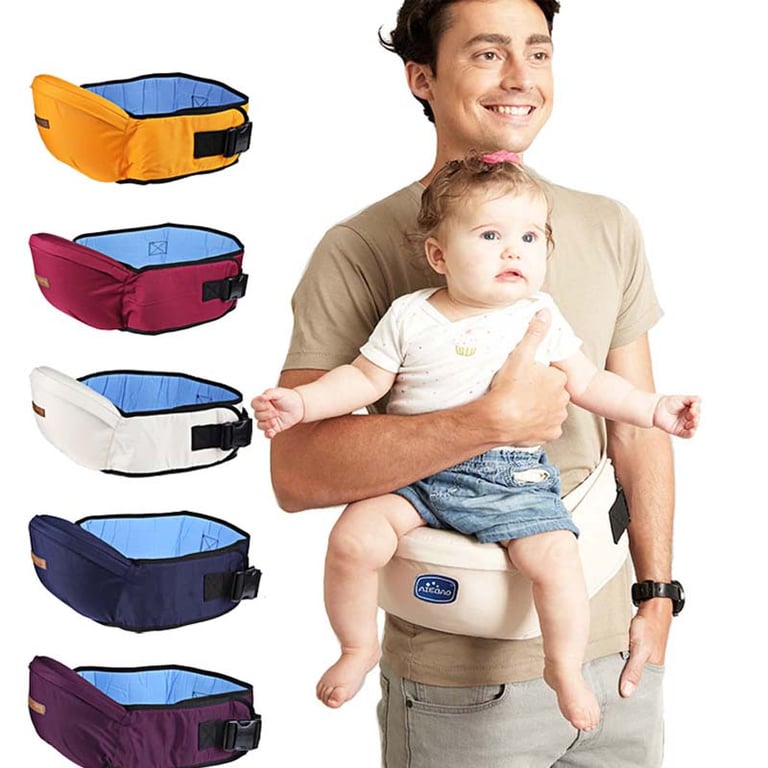 Pratico marsupio per bambini, che si attacca facilmente alla vita e consente al bambino di sedere comodamente e guardare in avanti.