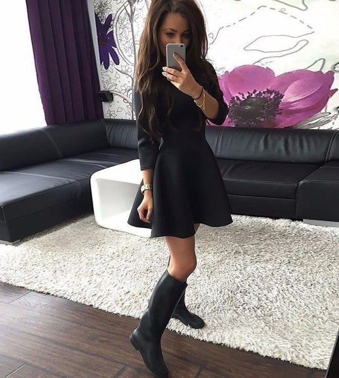 Abito corto con maniche lunghe e una bellissima gonna a volant.