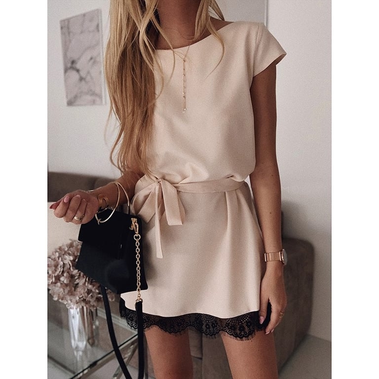 Scollatura classica a O. Orlo della gonna decorato con delicato pizzo.