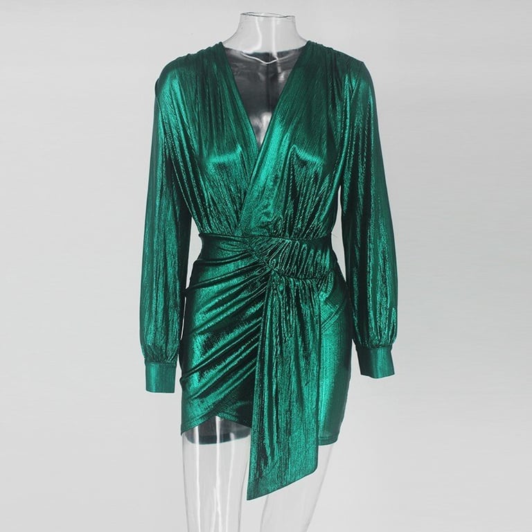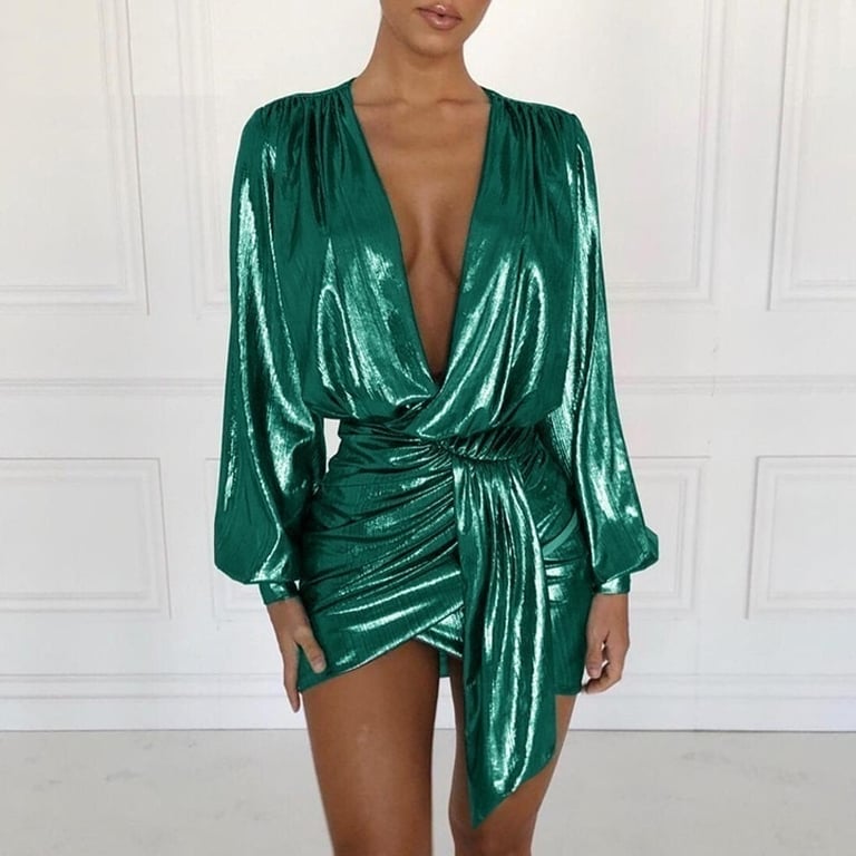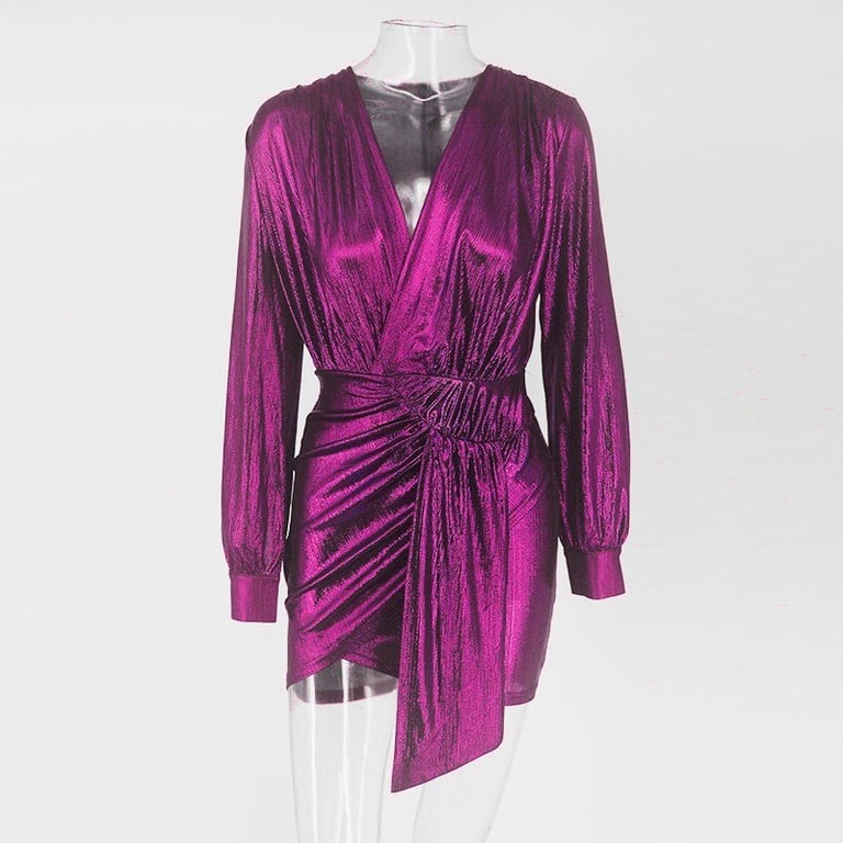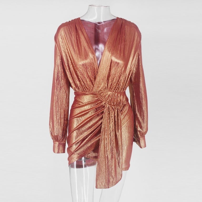 Mini abito con maniche lunghe e scollatura audacemente profonda.