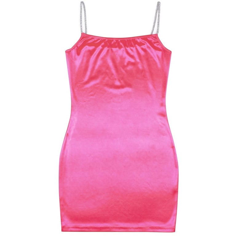 In materiale lucido, con spalline decorate con strass.