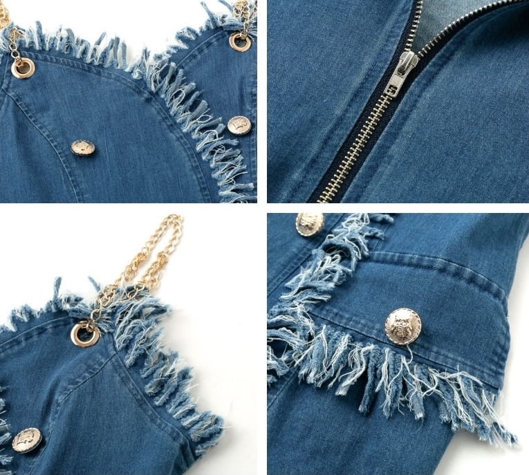 Stiloso mini abito in denim con frange.