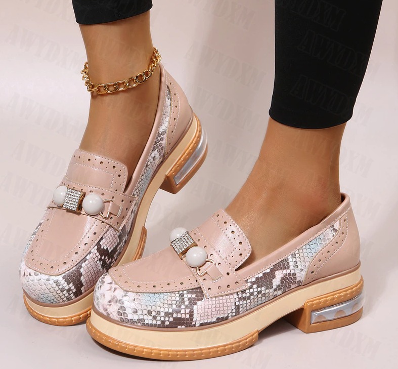 Mocassini alti da donna con stampa in pelle di serpente