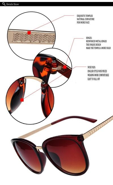 Non ci sono mai abbastanza occhiali da sole! Ecco perché vi offriamo questi bellissimi, eleganti e colorati pezzi universali. Credete che staranno bene a tutte noi. Saranno splendidi con qualsiasi outfit, dai pantaloni sportivi ai vestiti! Sono decorati con dettagli dorati, che creano un'impressione di lusso che le donne desiderano. Potete scegliere tra 4 varianti di colore.