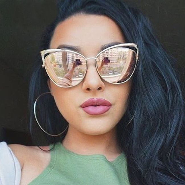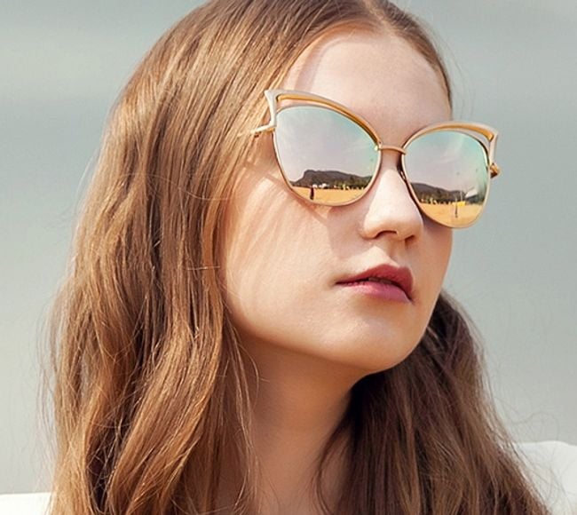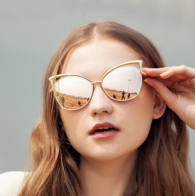 Bellissimi occhiali da sole moderni con effetto specchiato, che diventeranno un accessorio imprescindibile per i vostri outfit estivi. La forma che ricorda gli occhi di un gatto è molto elegante e raffinata. Gli occhiali sono disponibili in diverse varianti di colore, sempre con montatura dorata.