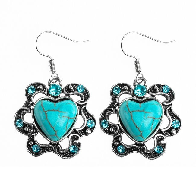 Gli orecchini sembrano un trifoglio riempito con un cuoricino e di colore blu.