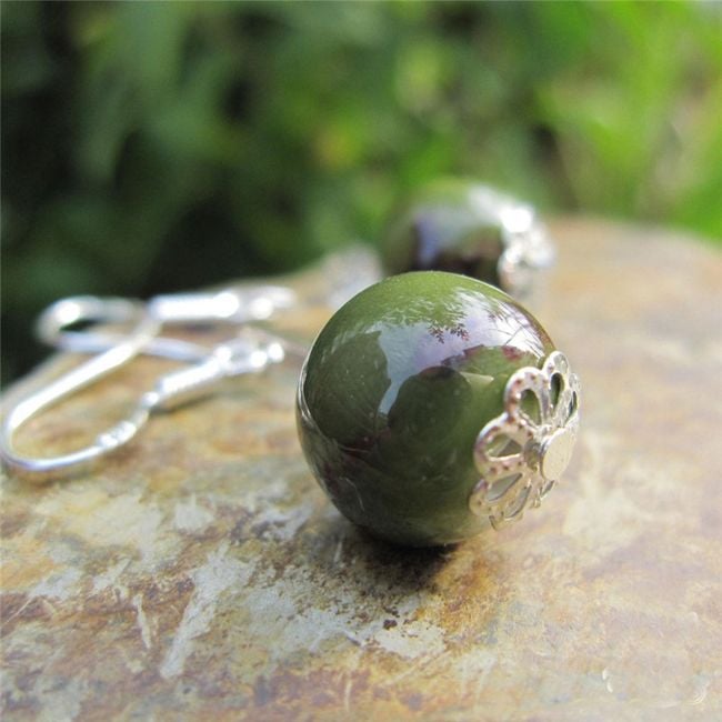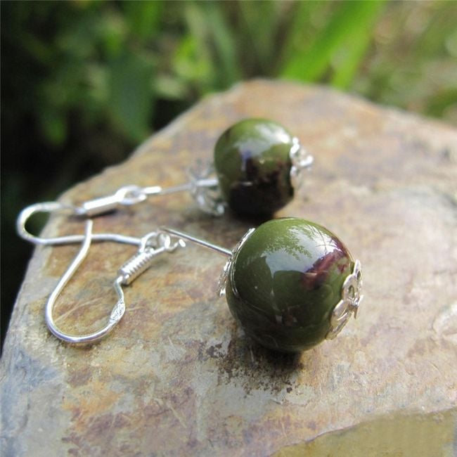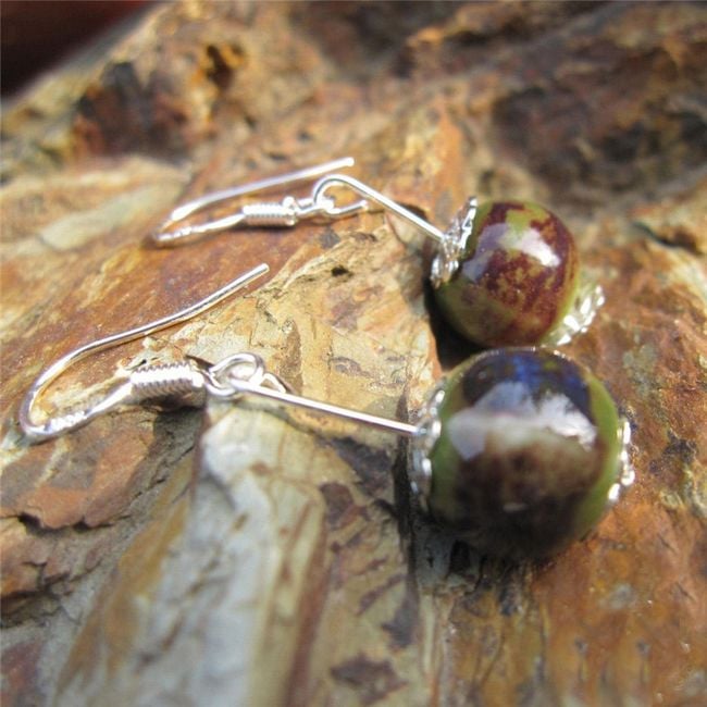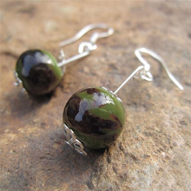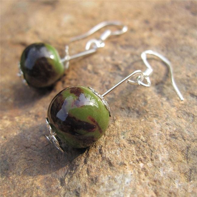 Piccole orecchini sono composti da una piccola pallina pendente di colore verde.