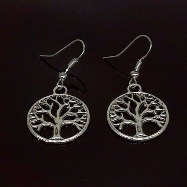 Questi orecchini interessanti sono realizzati in forma circolare classica. L'interno del cerchio è decorato con un motivo ad albero. Ideali per le amanti della natura.