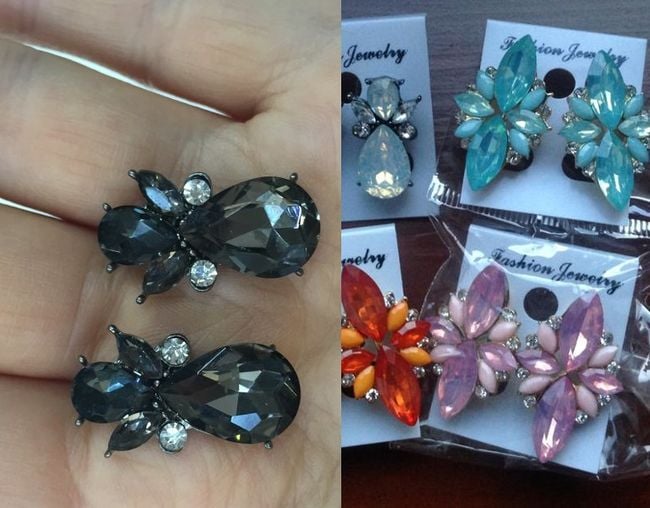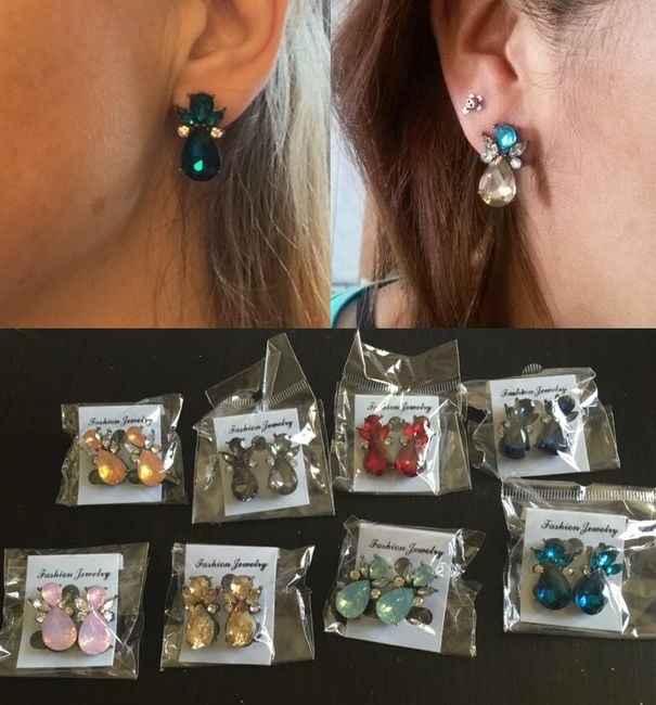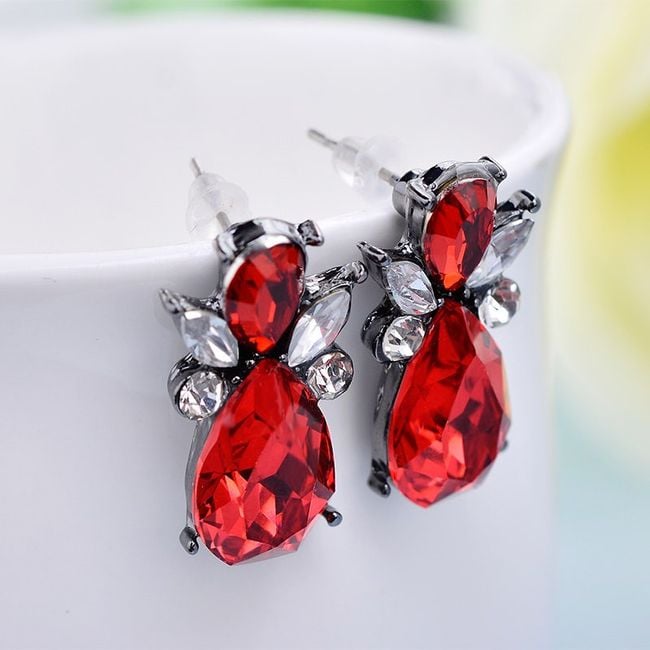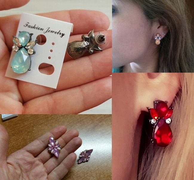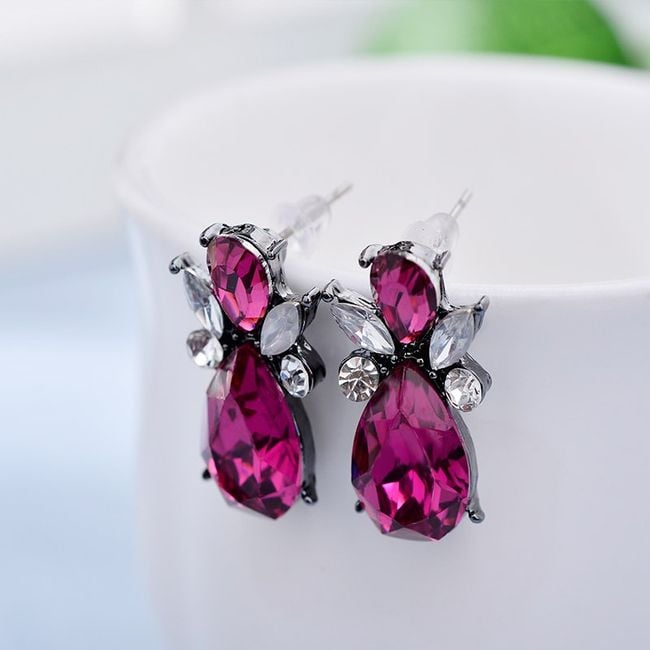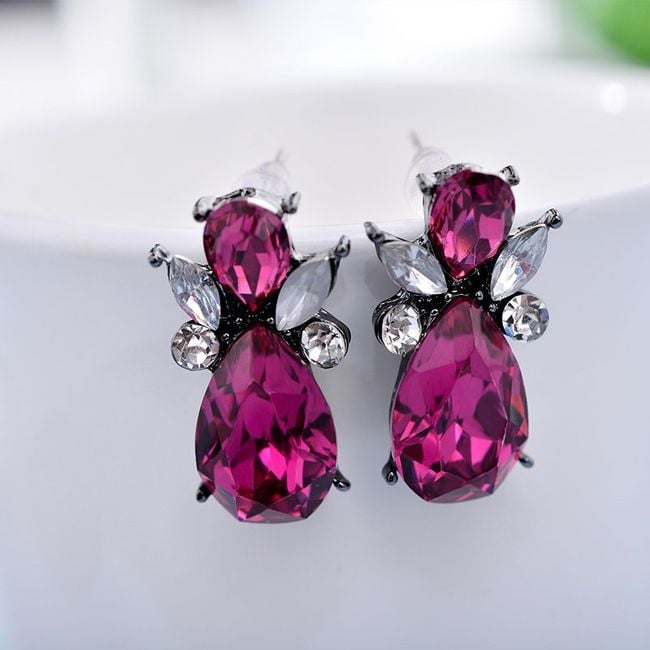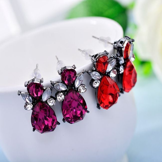 Orecchini stravaganti abbelliranno le orecchie femminili in modo evidente. Gli orecchini sono decorati con grandi pietre. Adatti per occasioni speciali con abiti e per l'uso quotidiano. Possibilità di scelta tra 17 colori.