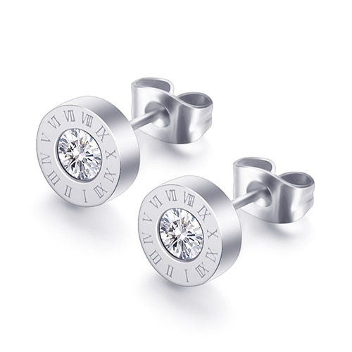 Orecchini eleganti da donna con zirconio – numeri romani in cerchio