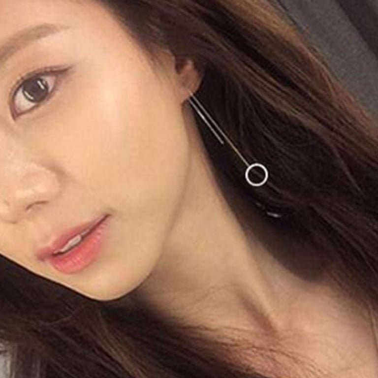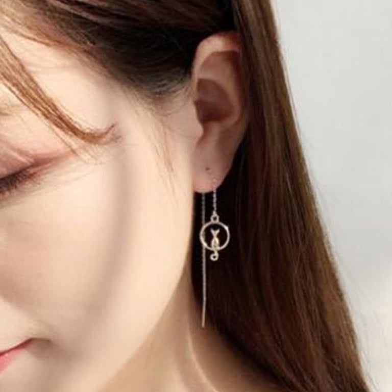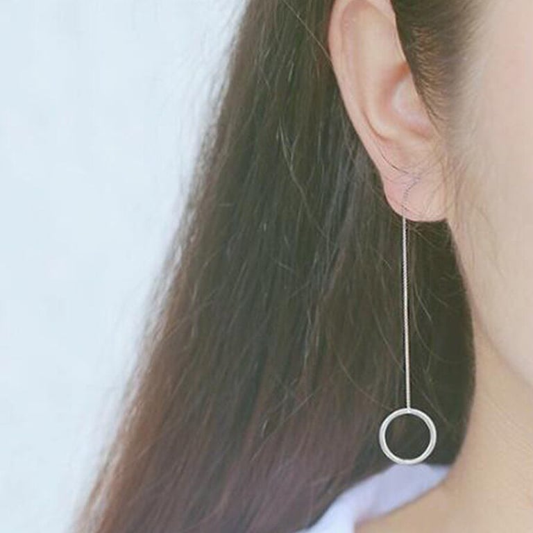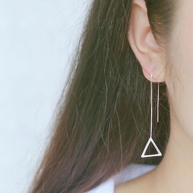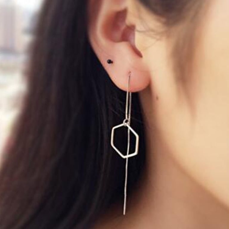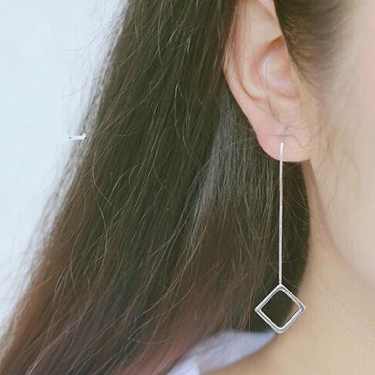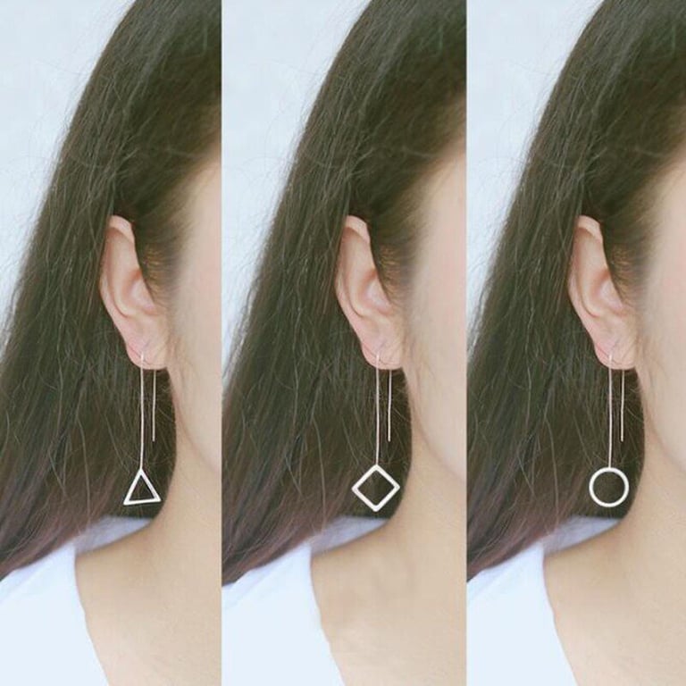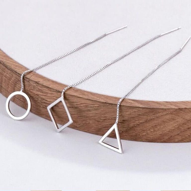 Orecchini lunghi da donna decorati con forme geometriche. La lunghezza degli orecchini è regolabile.