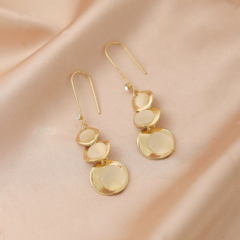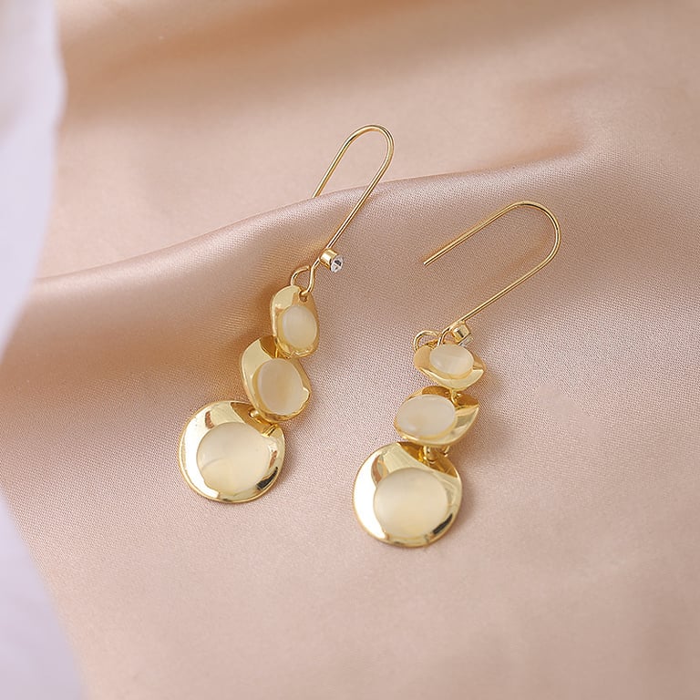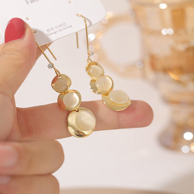 • Orecchini pendenti molto originali con un aspetto retro grazie a 3 dischetti sovrapposti.