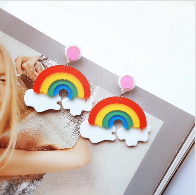 • Bellissimi orecchini a pendente con arcobaleno e nuvola.