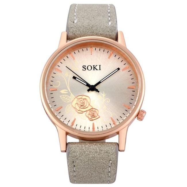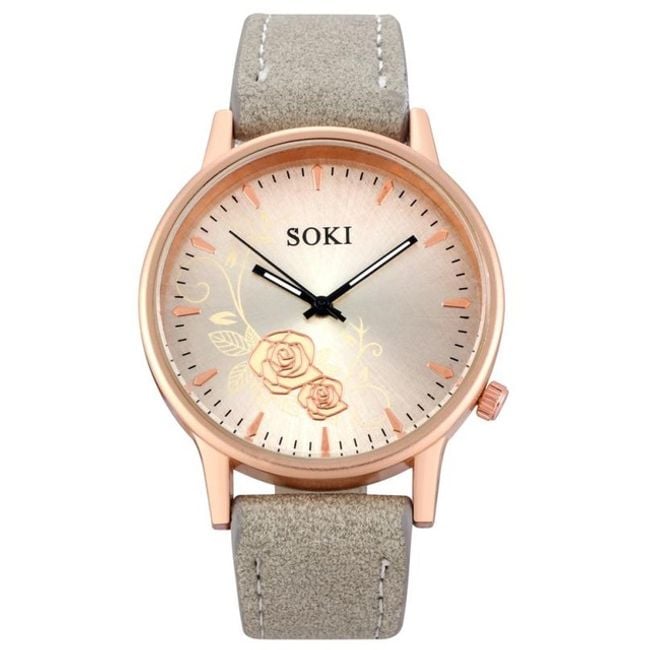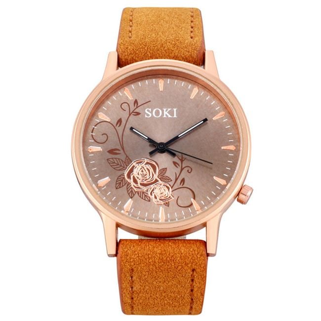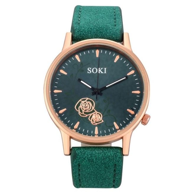 Orologi eleganti per donne con cinturino in pelle sintetica e quadrante decorato con un motivo di rose. Scegli tra 4 colori.