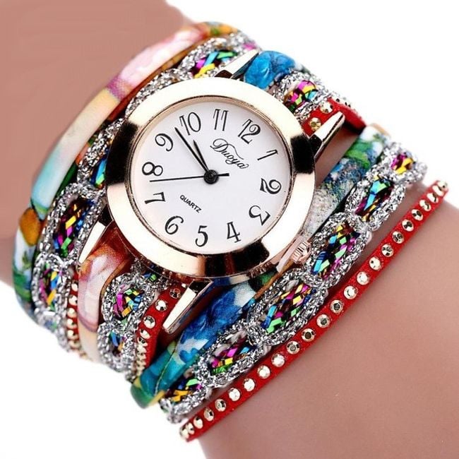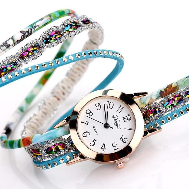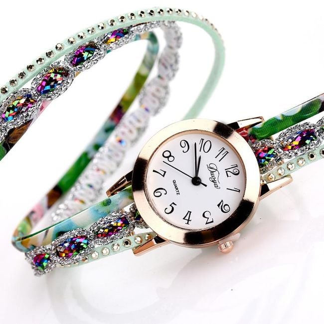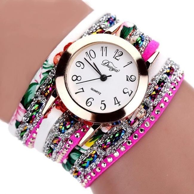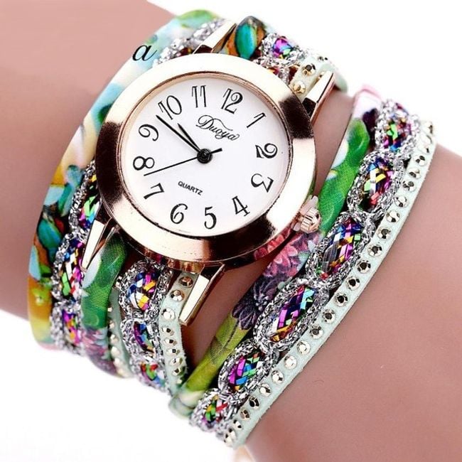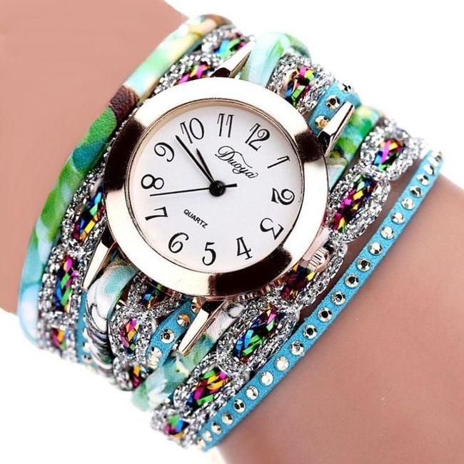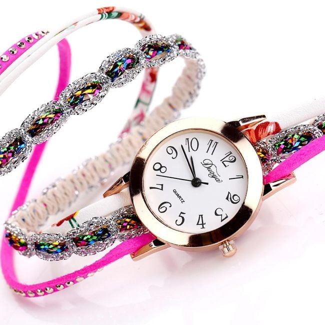 Orologi da donna eleganti con quadrante chiaro sono realizzati sotto forma di bracciale colorato. Scegli tra 6 varianti.