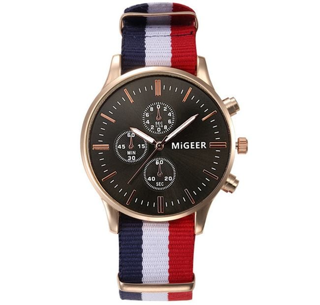 L'orologio ha un cinturino tricolore ed è adatto come accessorio per l'uso quotidiano.