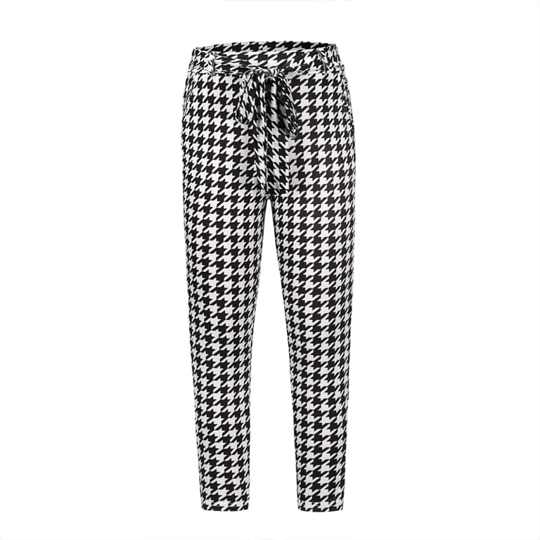 Pantaloni a quadri da donna con vita alta