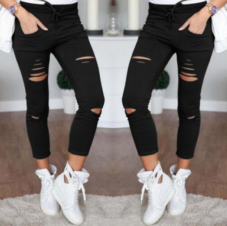 Pantaloni alla moda da donna con strappi. Disponibili in 3 colori. Ideali per la prossima stagione primaverile.