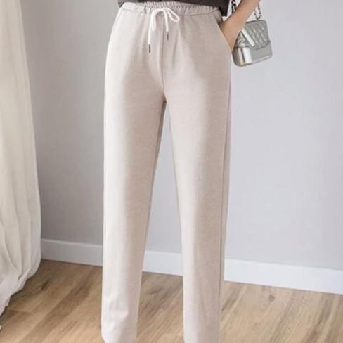 Pantaloni eleganti e originali da donna in tessuto con cintura. Sono fantastici sia con una camicia che con una maglietta.