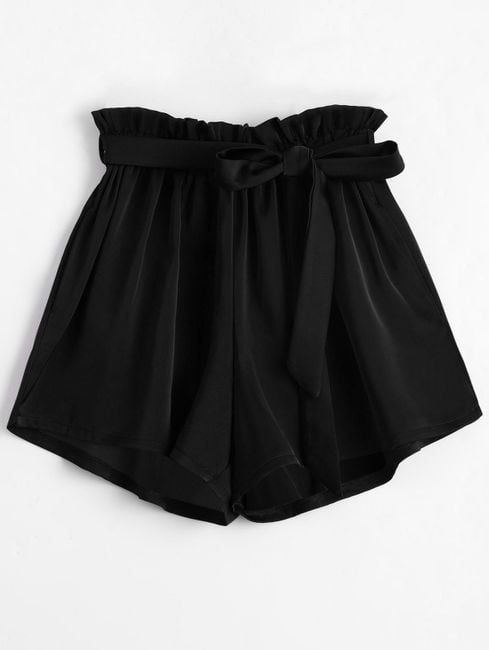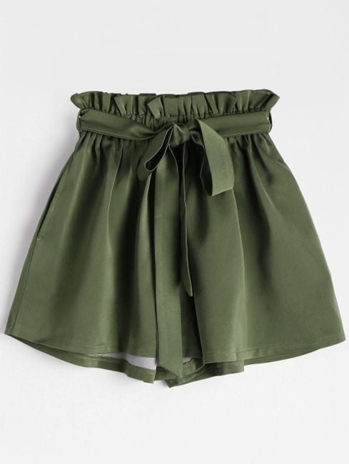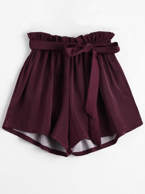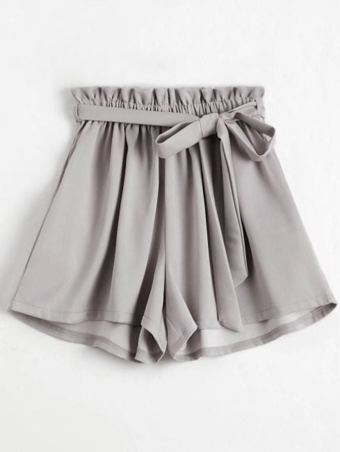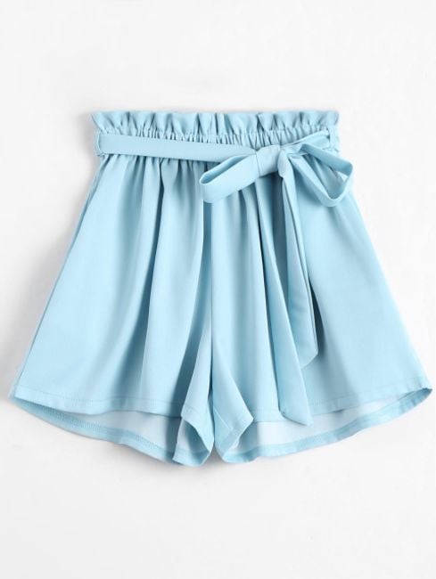 I pantaloni hanno una vita alta, che può essere regolata con un grande fiocco.