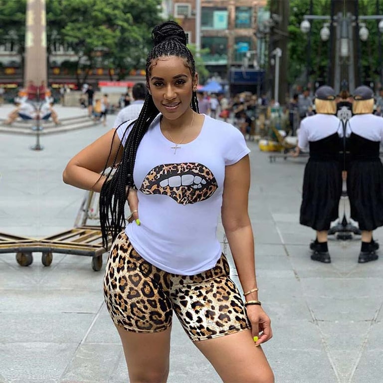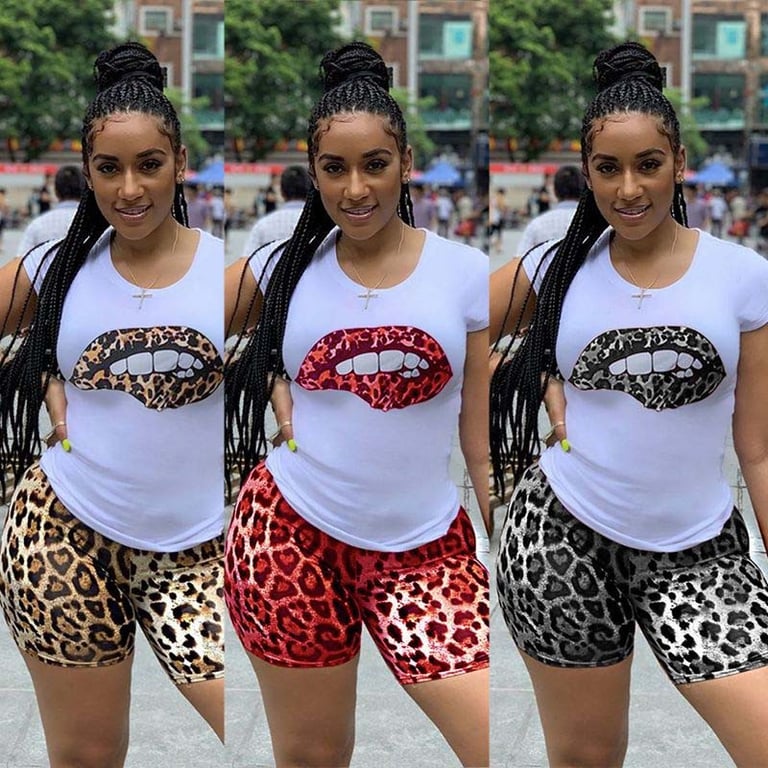 Super set che include pantaloni corti e una maglietta per donne. Adatto per la primavera e l'estate.