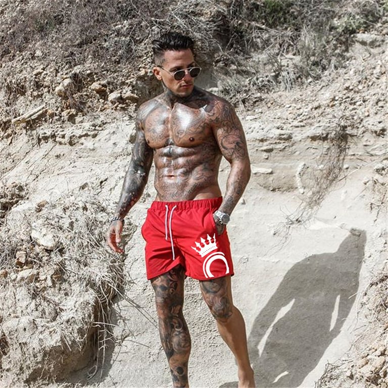 Costumi da bagno da uomo in tendenze sportive da spiaggia con stampa