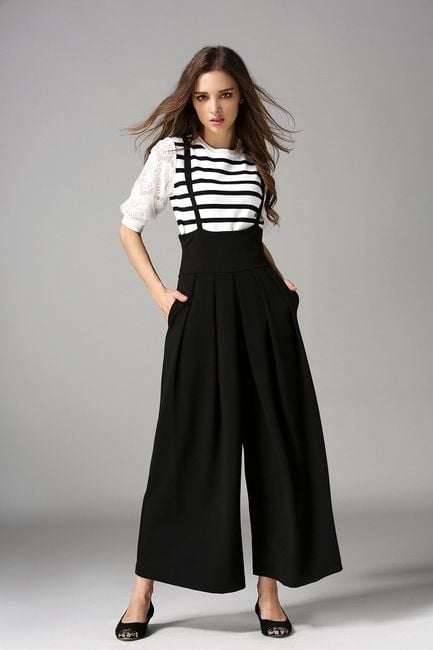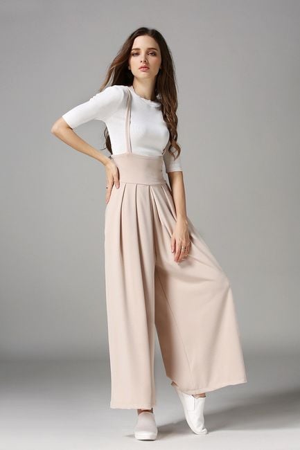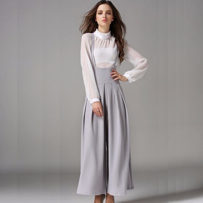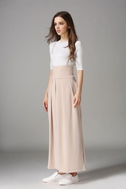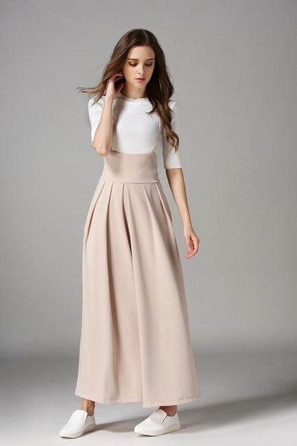 Pantaloni maxi a vita alta con bretelle saranno un pezzo originale e meraviglioso per outfit più eleganti! Puoi scegliere tra 3 colori. Sono indicate le misure del prodotto, non del corpo.