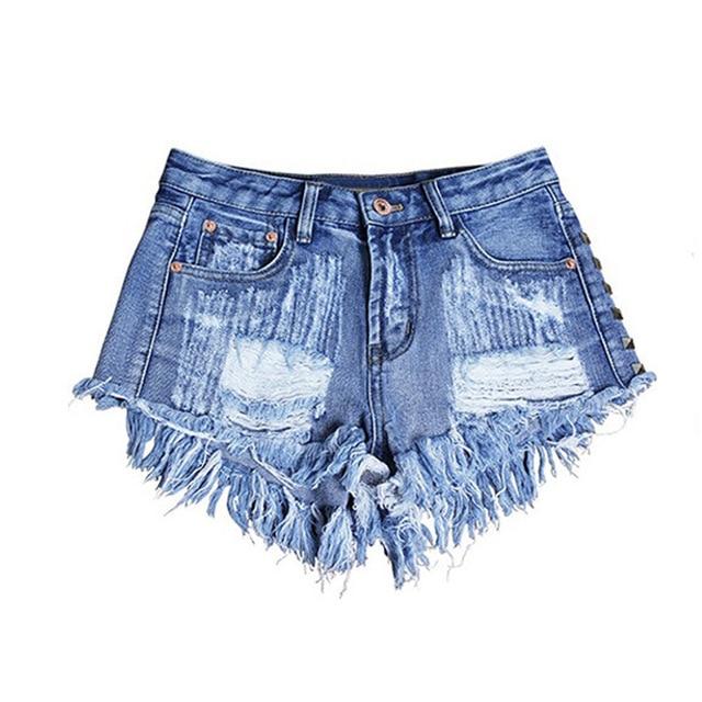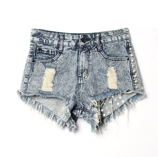 Shorts in denim per donna in stile punk. Disponibili in due tonalità di blu.