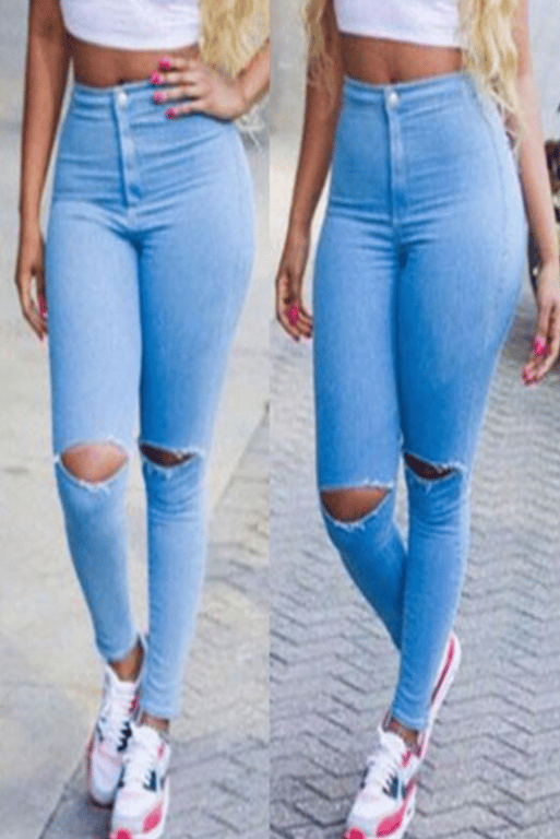 - Pantaloni preferiti dalle donne – jeans in stile strappato alla moda.