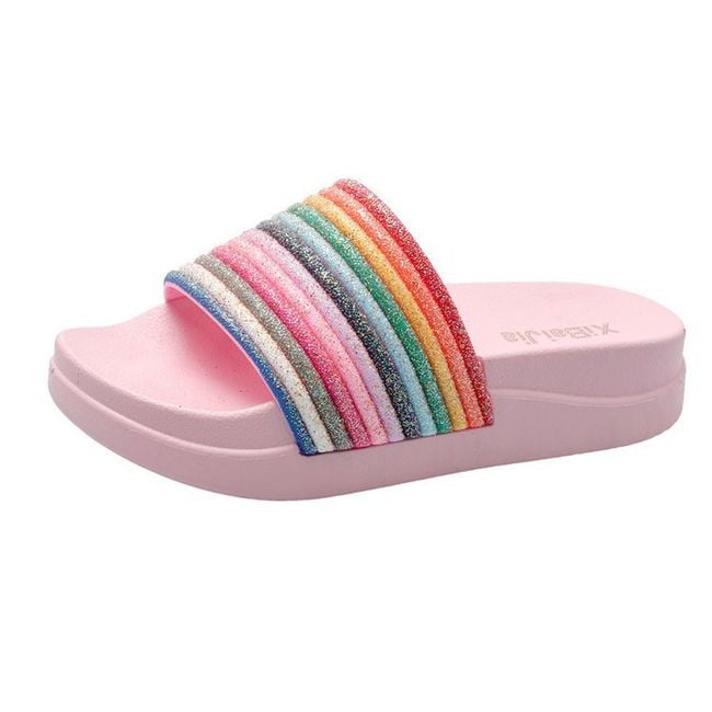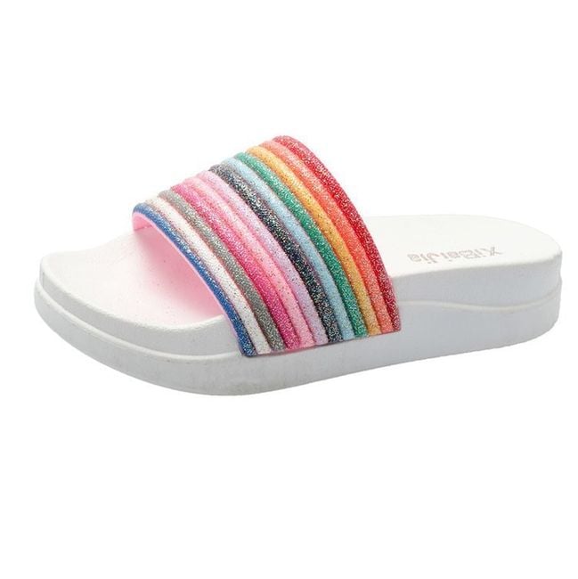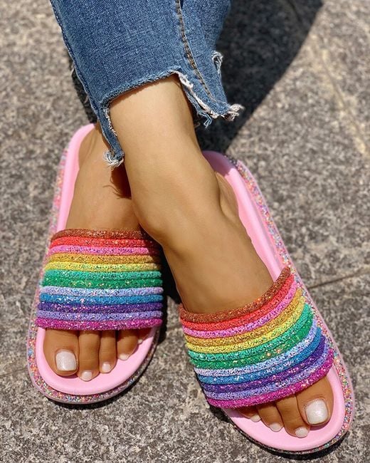 Eleganti ciabatte da donna per casa in versione arcobaleno e in 2 varianti di colore.