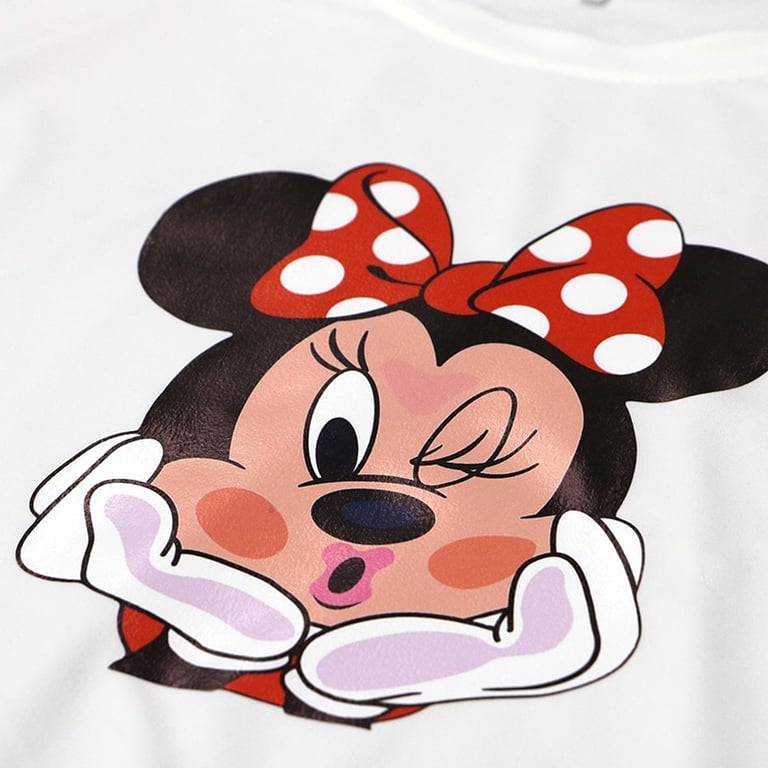 Li offriamo in due colori di base, bianco e nero. Gli abiti sono senza scollatura e con maniche a tre quarti. Gli abiti hanno una vestibilità più ampia, quindi se ami i vestiti oversize, questi sono perfetti per te. Inoltre, puoi scegliere se decorare il tuo abito con Minnie o Daisy.