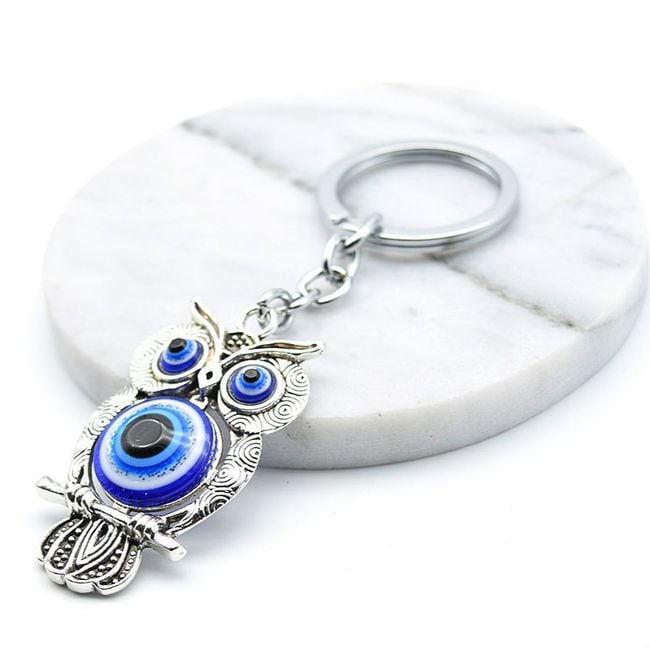 Il gufo è decorato con il simbolo greco dell'occhio blu, che ha il compito di proteggere il suo proprietario dal male.