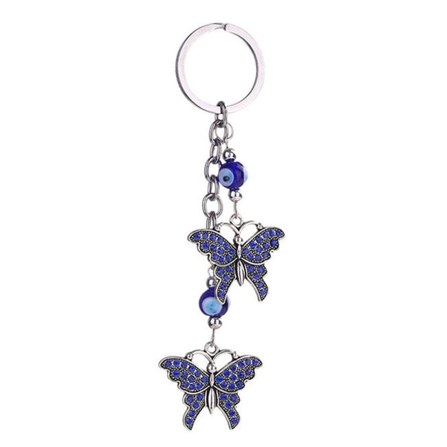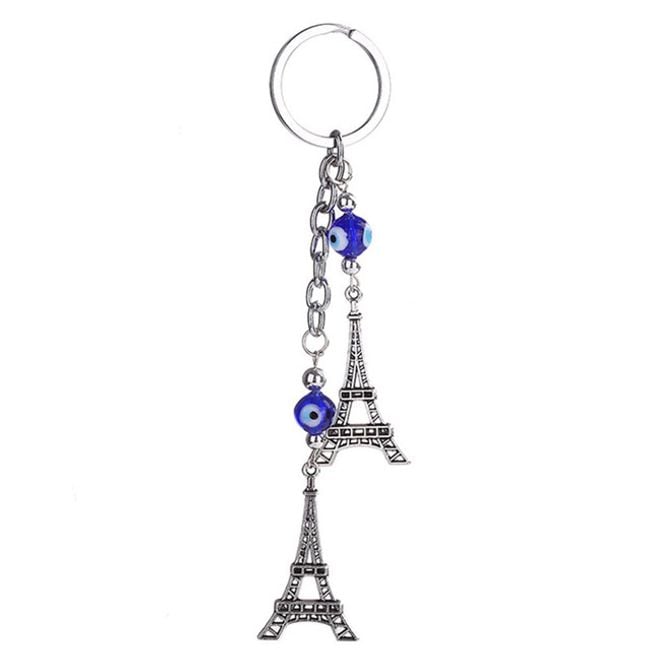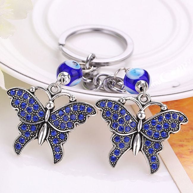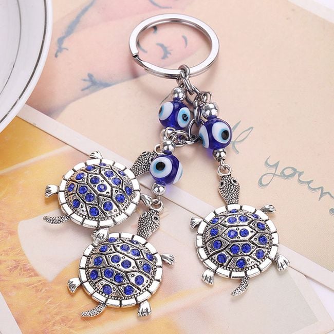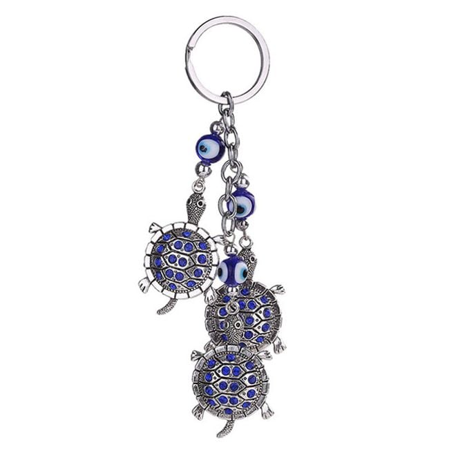 Portachiavi in metallo con pietre e occhio della fortuna in tre diverse varianti.