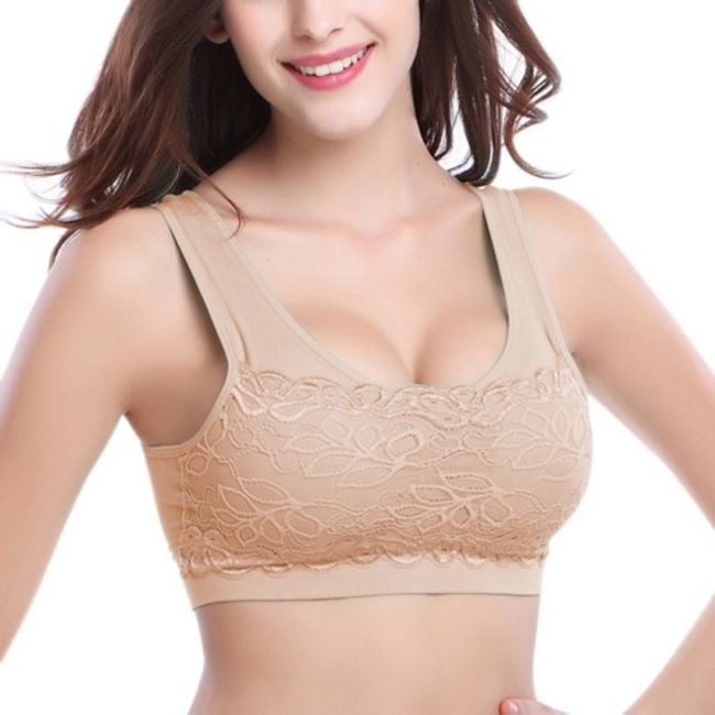 Il reggiseno è decorato con pizzo e ha spalline larghe.
