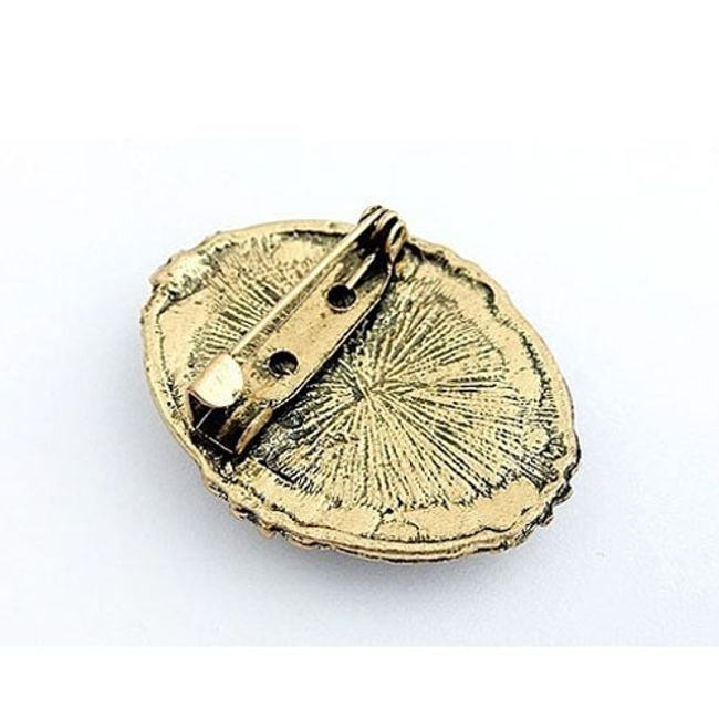 Questa spilla di forma ovale è adatta come accessorio non solo per eventi sociali, ma anche per le persone che amano le cose retrò. È sconsigliato metterla in contatto con l'acqua.
