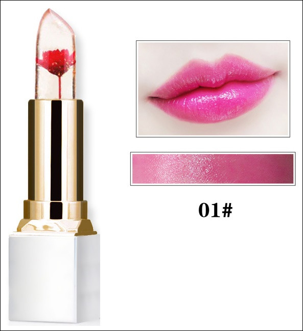 Rossetto gel magico con effetto idratante, che cambia colore sulle labbra in base alla temperatura corporea. 3 delicate tonalità (vedi foto). Design elegante con un bellissimo fiore all'interno del rossetto.