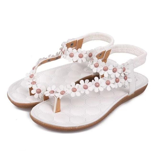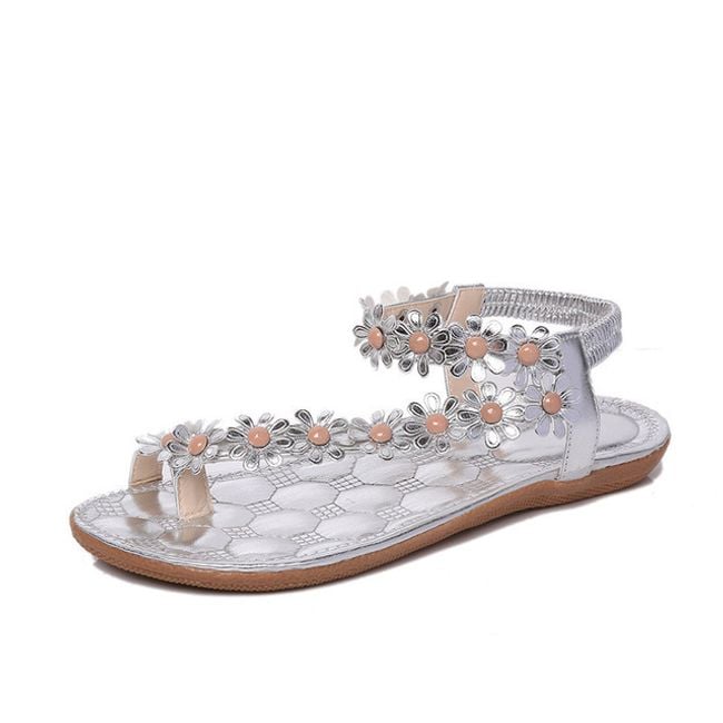 Sandali da donna con motivo floreale e suola piatta. Sono disponibili 3 varianti di colore.