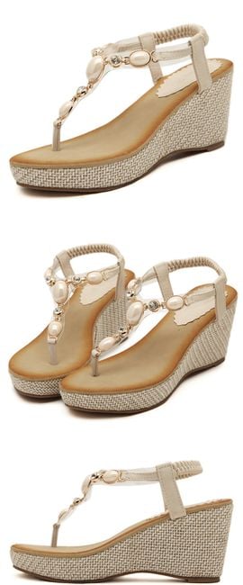 Sandali da donna con suola alta decorati con pietre originali in stile bohemien. Sono disponibili in 2 varianti di colore.