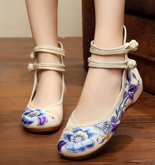 Scarpe da donna con zeppa e fiori ricamati