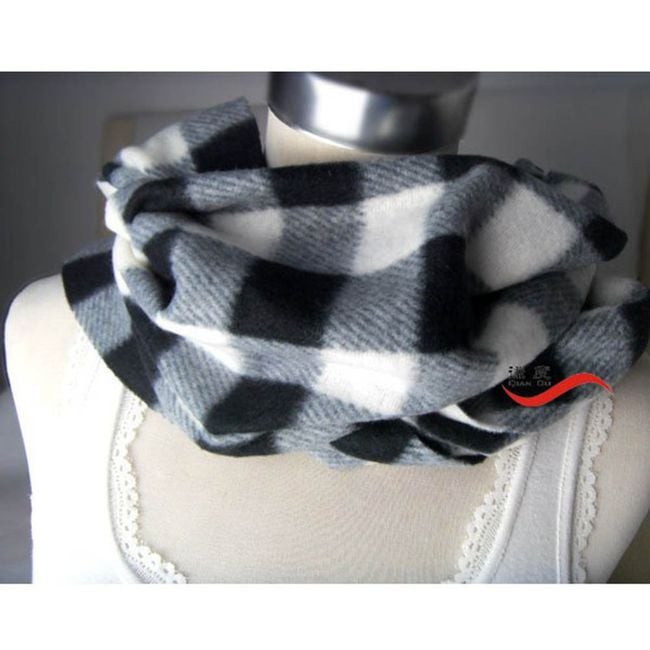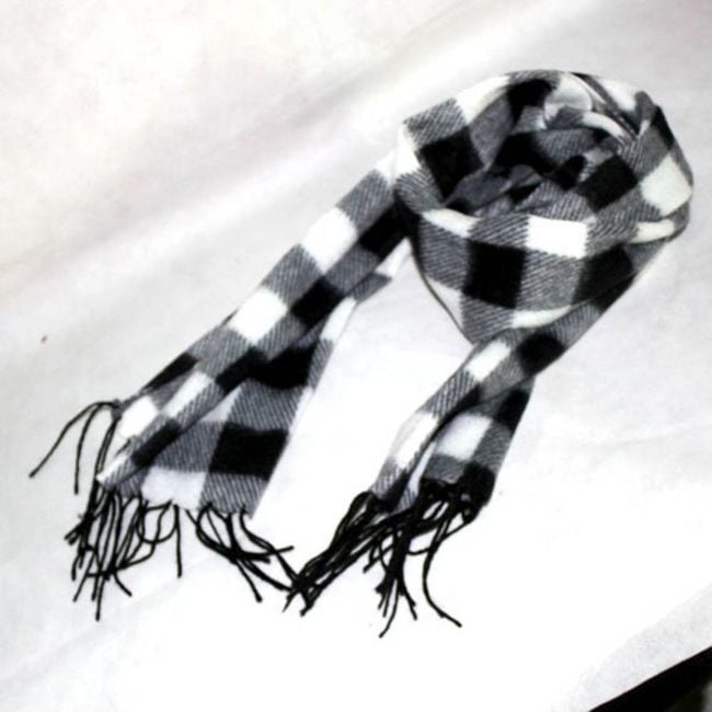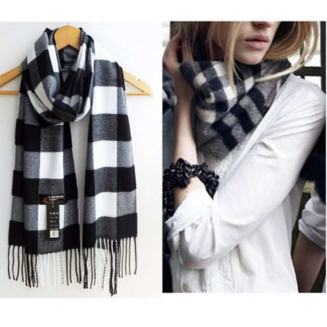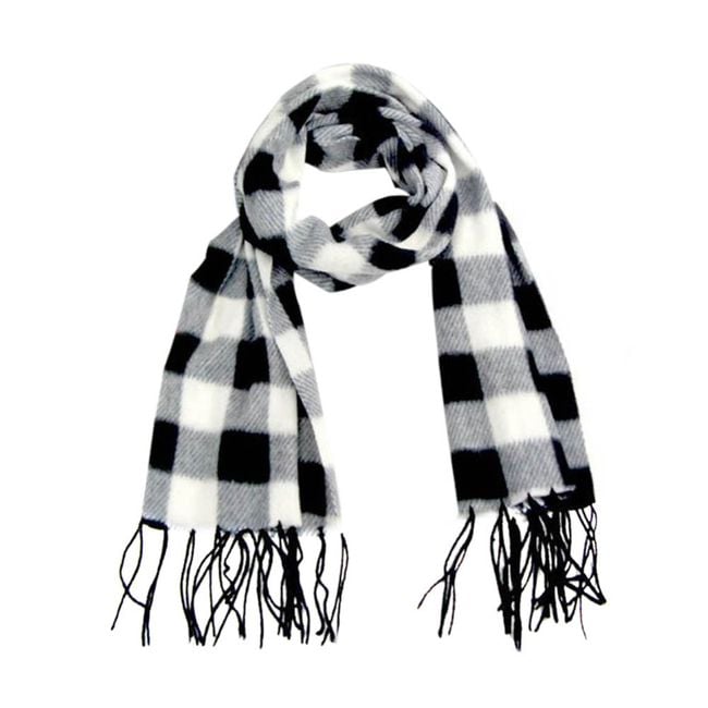 Una sciarpa a quadri riscaldante in tre colori completa perfettamente il tuo outfit invernale.