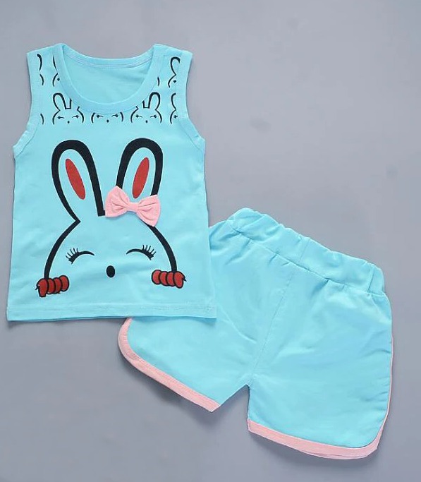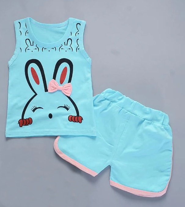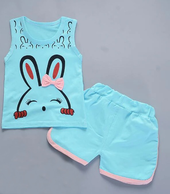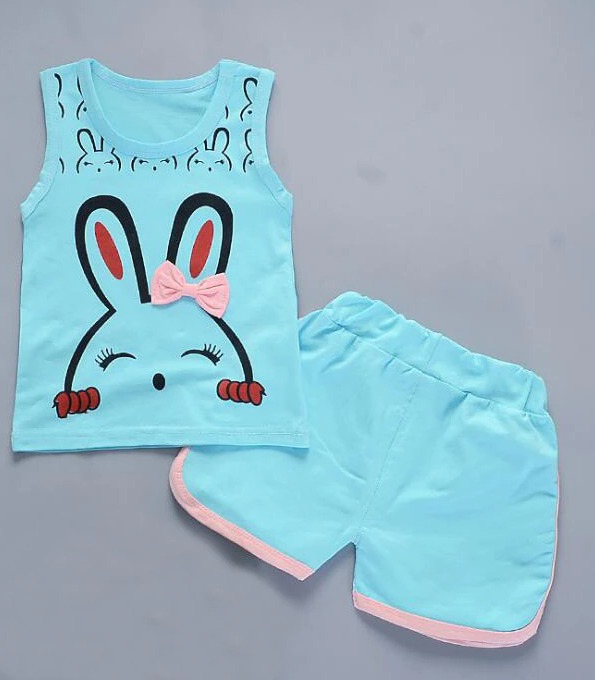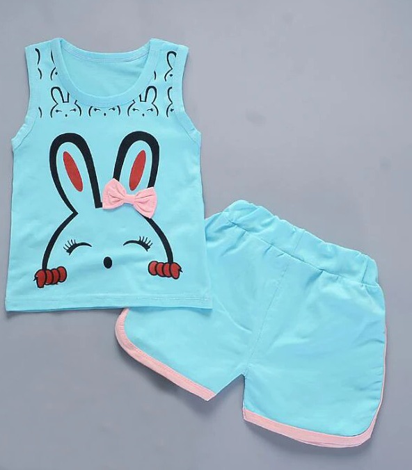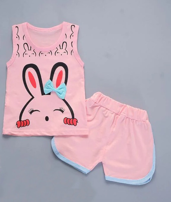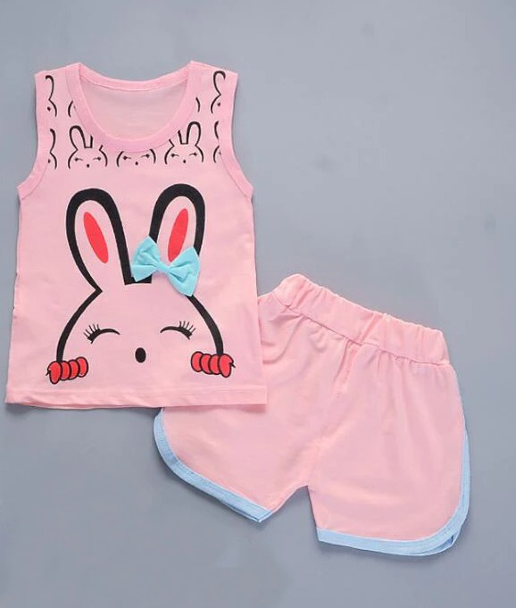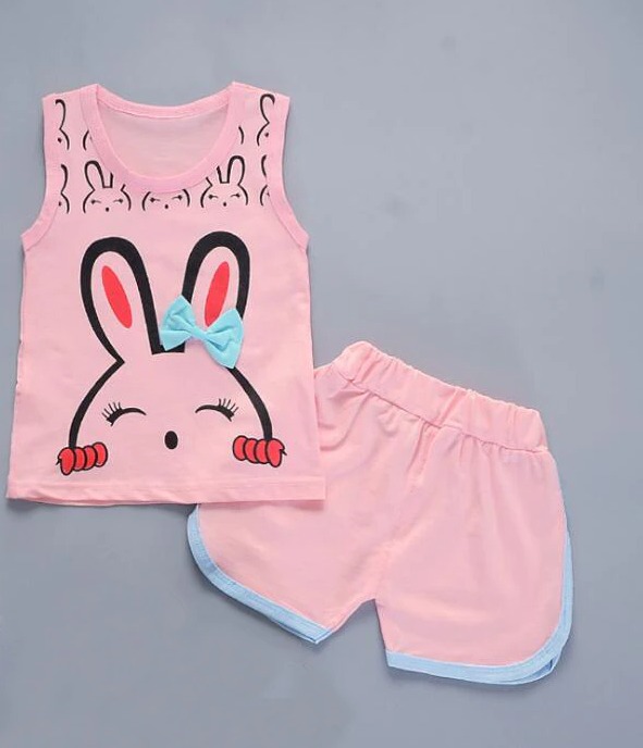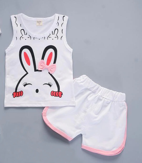 Set di abbigliamento estivo per ragazze con stampa di coniglietto