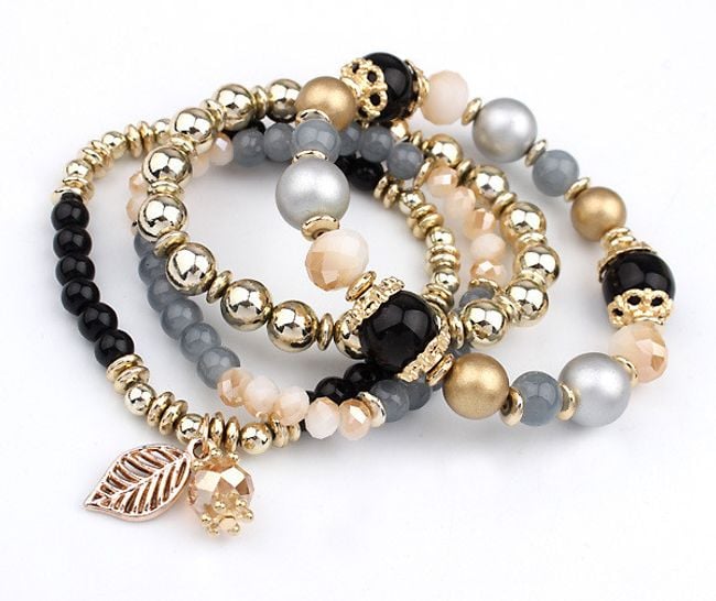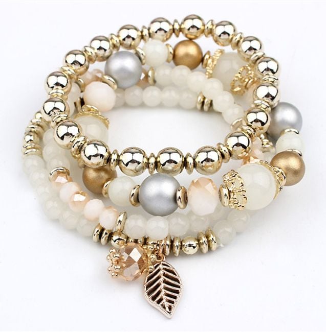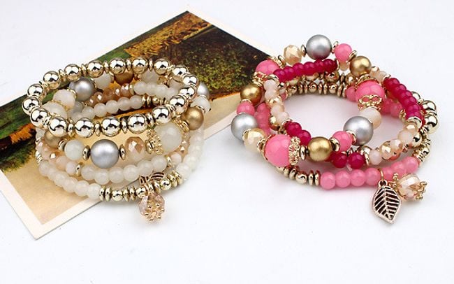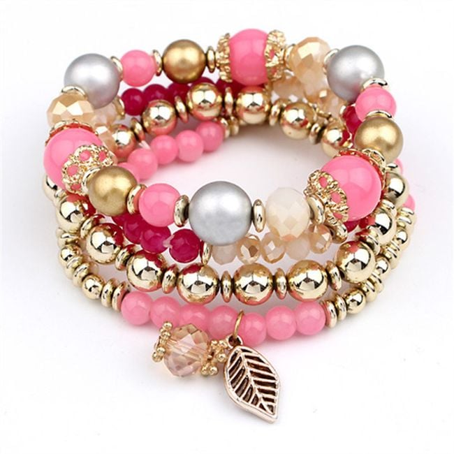 Il set di braccialetti di perline da donna risalta magnificamente sul tuo polso. È disponibile in diverse dimensioni di perline e con un ciondolo a forma di foglia. Disponibile in 5 varianti di colore.