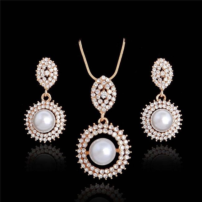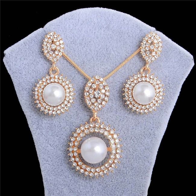 Set di gioielli da donna con perle artificiali e pietre di bigiotteria.