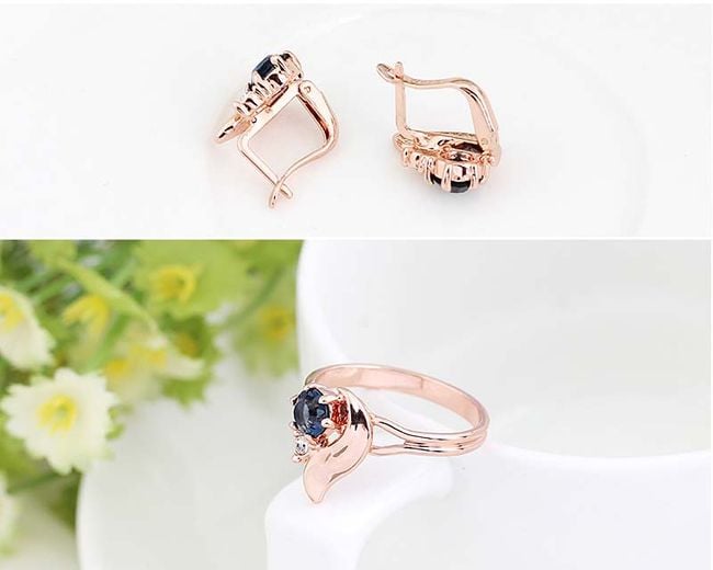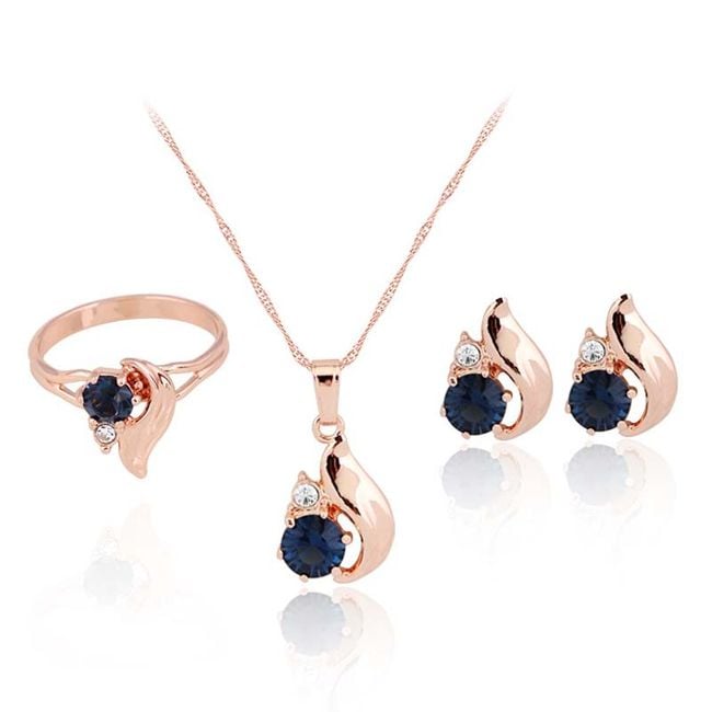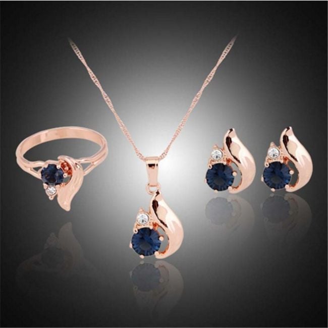 Questo set include un anello, una collana e orecchini in un attraente colore rosa oro con pietre.